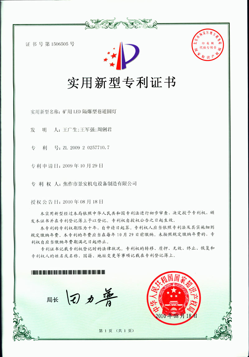 焦作景安公司始終堅(jiān)持“以科技為先導(dǎo),以市場為導(dǎo)向”的發(fā)展戰(zhàn)略,不斷進(jìn)行新產(chǎn)品的研制和開發(fā),在國家“六五”到“九五”期間,承擔(dān)和參與了國家多項(xiàng)科技攻關(guān)項(xiàng)目,產(chǎn)品的技術(shù)和質(zhì)量一直處于全國同行業(yè)領(lǐng)先位置。并被中國電器工業(yè)協(xié)會(huì)評(píng)定為“質(zhì)量可信產(chǎn)品”。特別是在礦用防爆燈領(lǐng)域,礦用隔爆型半導(dǎo)體(LED)照明燈具,2008年列入國家火炬計(jì)劃,獲2009年河南省工業(yè)和信息化廳的科技成果二等獎(jiǎng),并擁有多項(xiàng)國家專利。